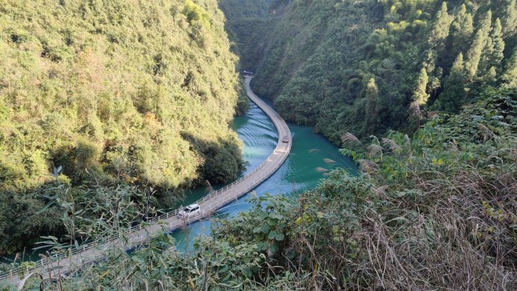 進入景區(qū)首先經(jīng)過的就是獅子關(guān)水電站。之后就到了獅子關(guān)景區(qū)里最有名的景點~“廊橋遺夢”,水上浮橋長度有400米,開車是可以直接上浮橋的,車過去的時候浮橋飄起打得水面形成一道道的水波紋。在浮橋正對的山腰有浮橋觀景臺,站在上面可以俯瞰整個浮橋景觀。過了浮橋往山谷之間開,會看到獅子關(guān)漂流道和獅吼瀑布,水流湍急,聲如獅吼。